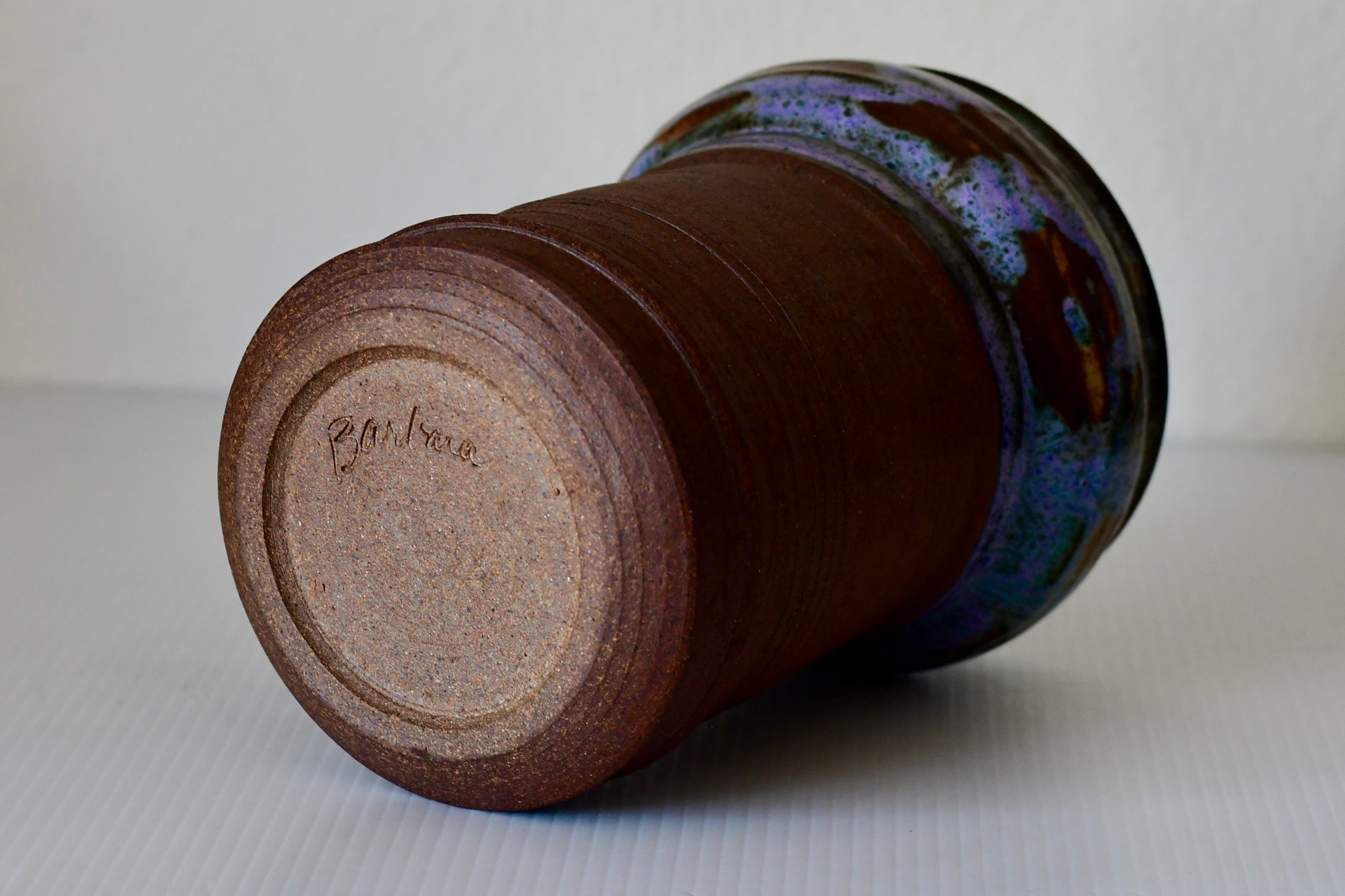 Vintage Stoneware Studio Pottery Vase Signed Barbara
