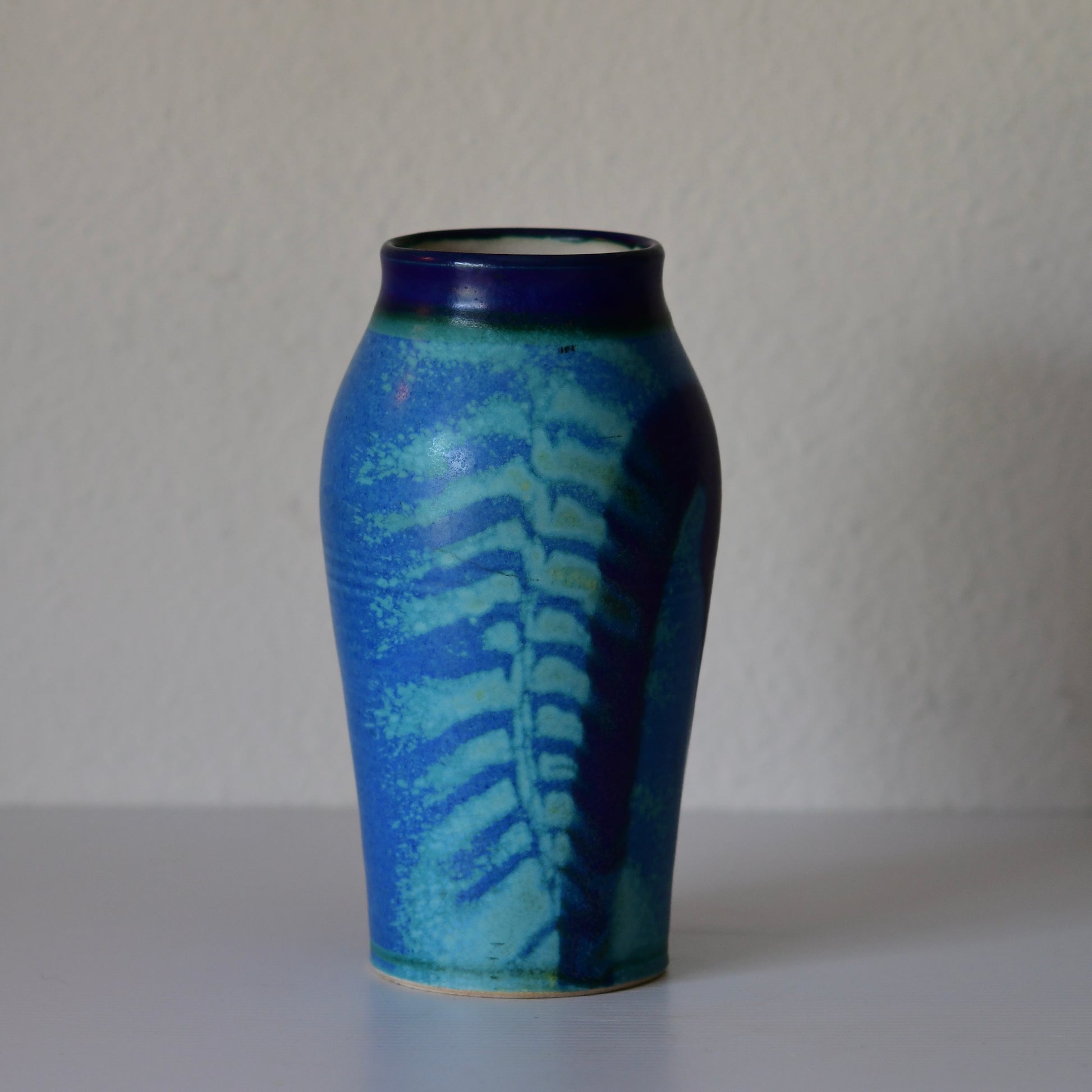 Vintage Blue Studio Pottery Vase Signed 8.75” Tall