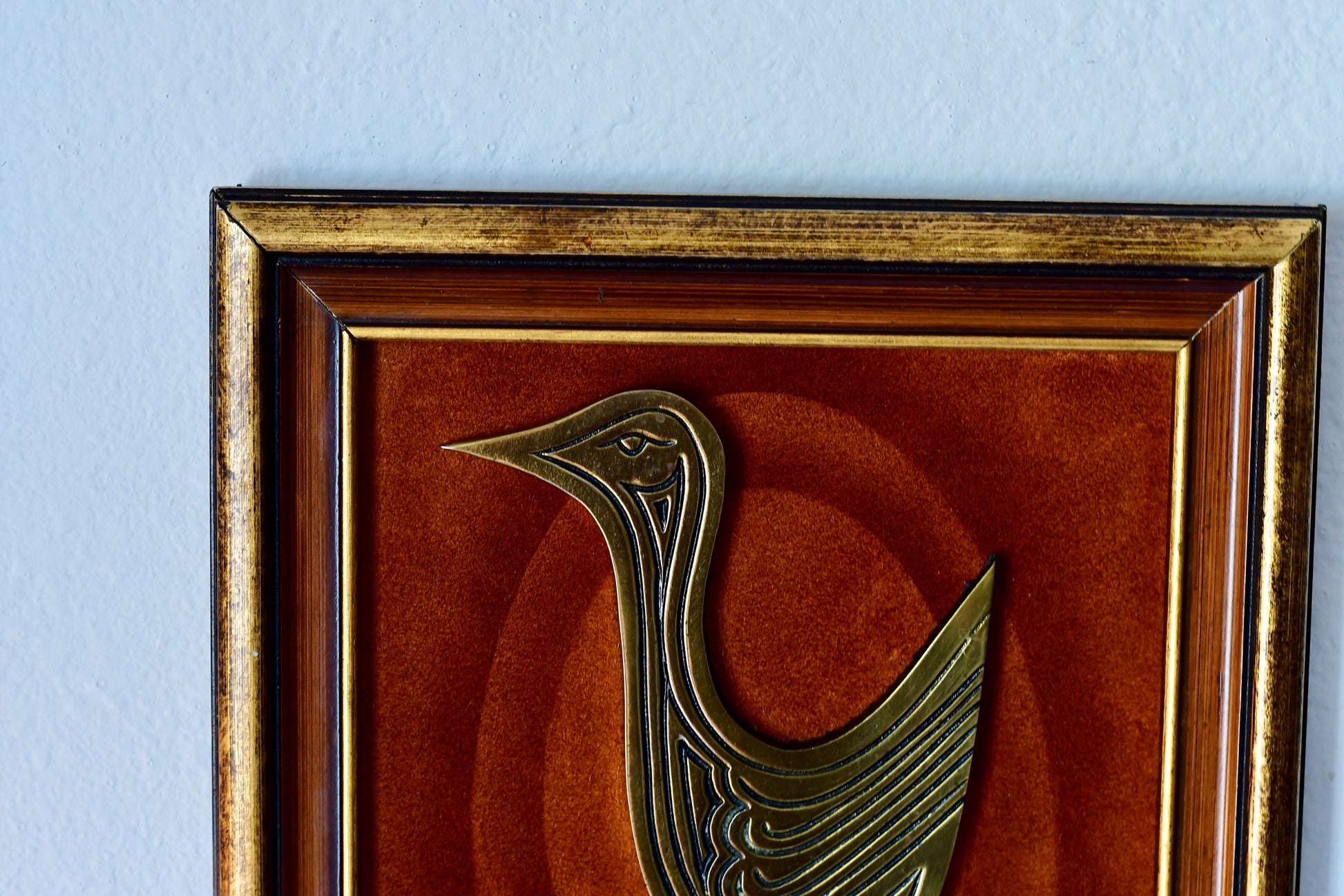 Vintage Brass Bird Sculpture Wall Art Circa 1979