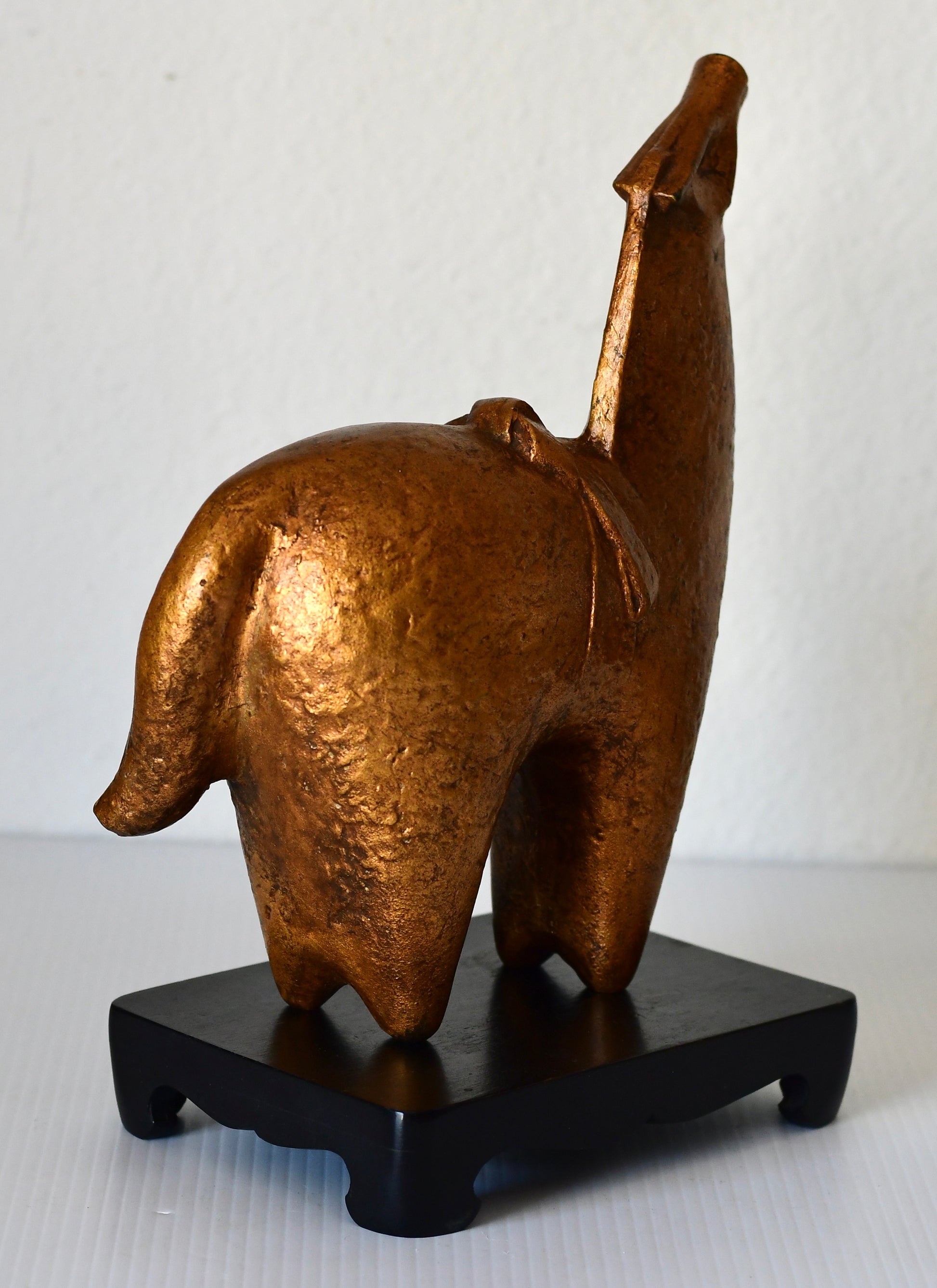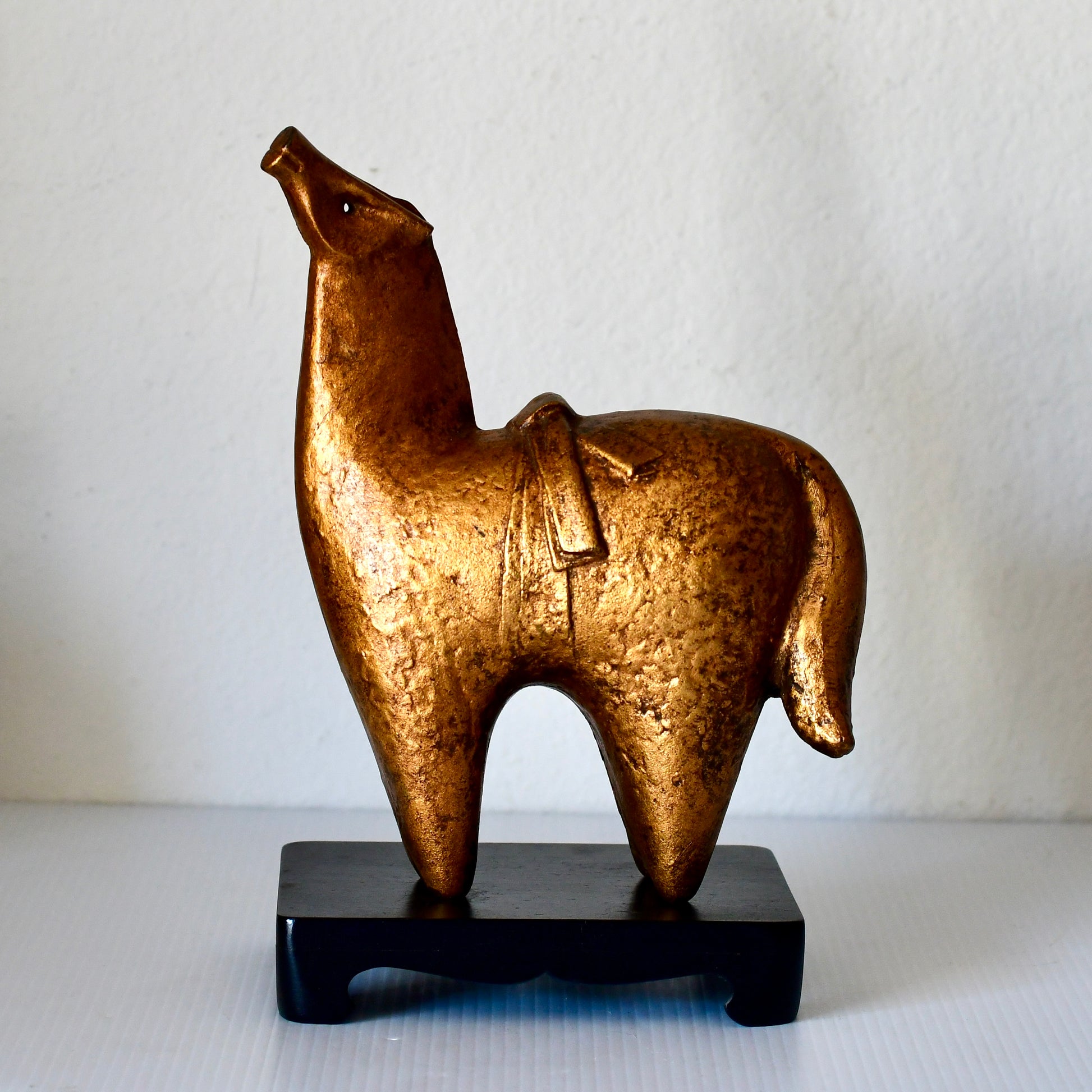 Vintage Gold Iron Horse Sculpture Zodiac Figurine Japanese Art