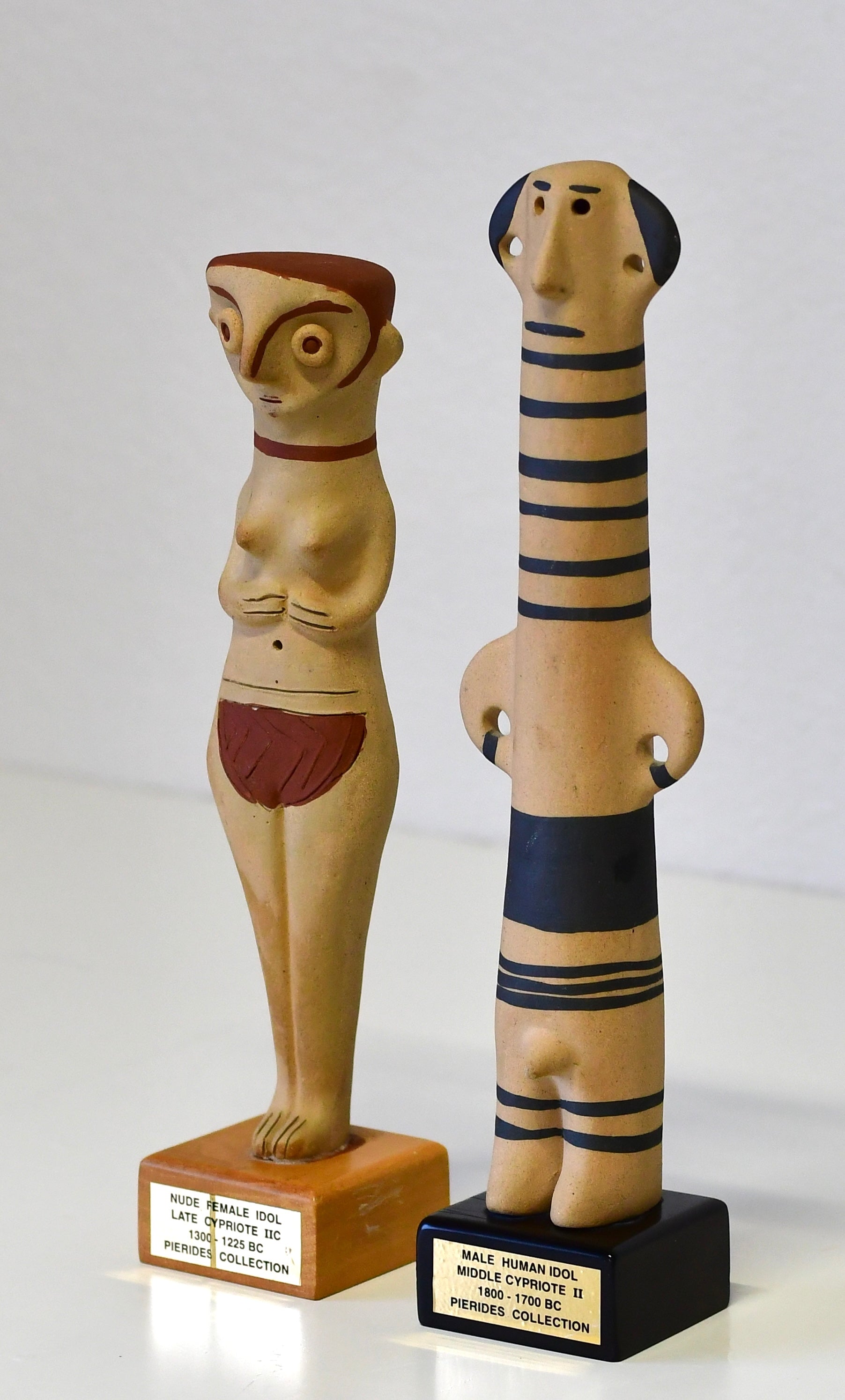 Vintage Greek Male & Female Pottery Idol Sculptures Zande Pierides Cypriote