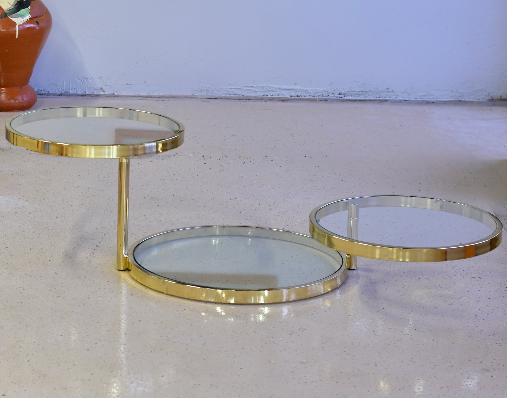 Vintage Milo Baughman DIA Tri-Level Gold and Glass Coffee Table 1984