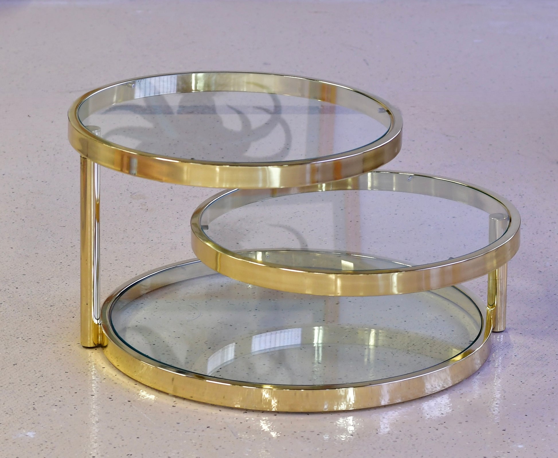 Vintage Milo Baughman DIA Tri-Level Gold and Glass Coffee Table
