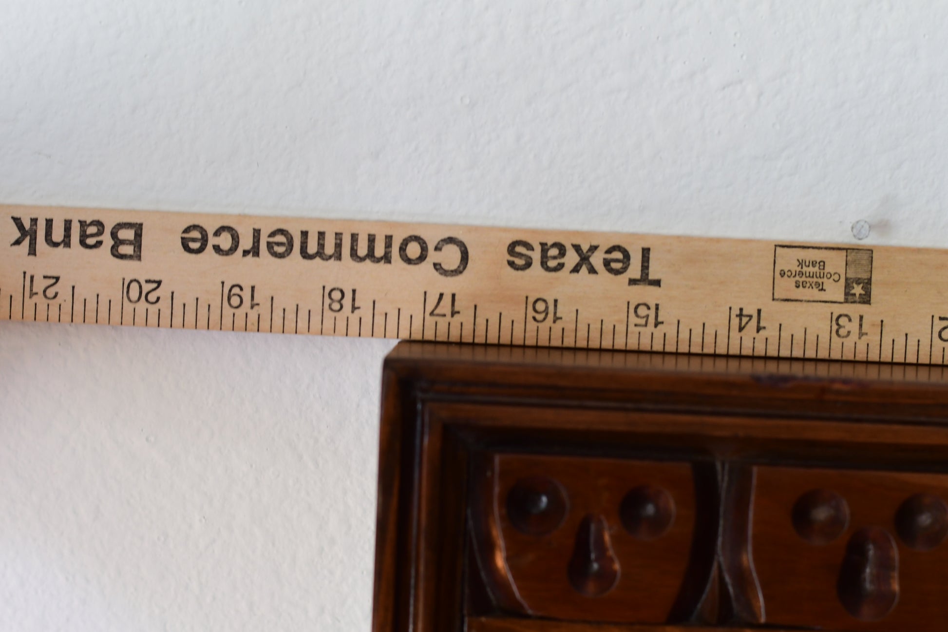 The piece features a carved wood panel with brass overlay and is in great condition with no damage.