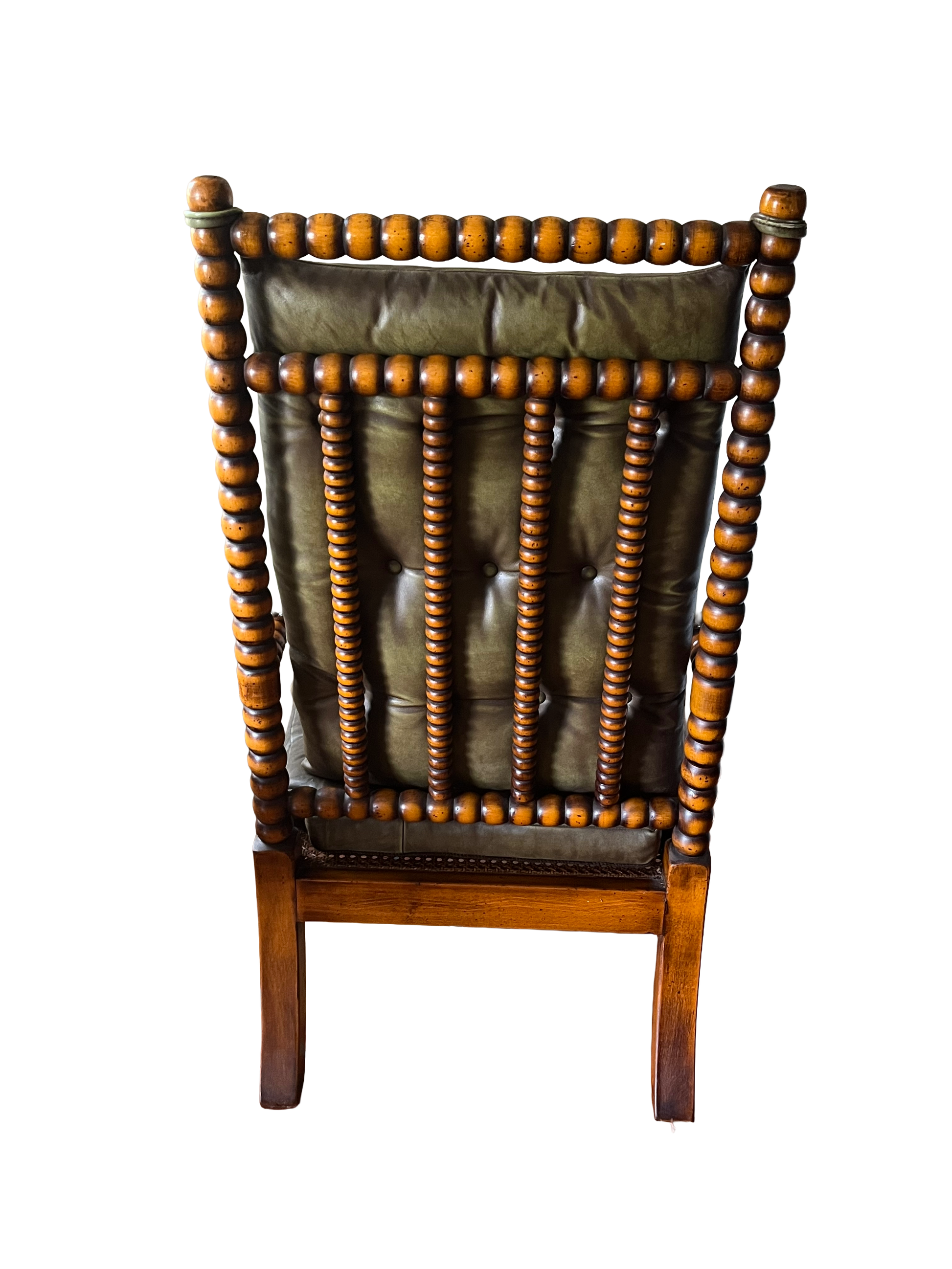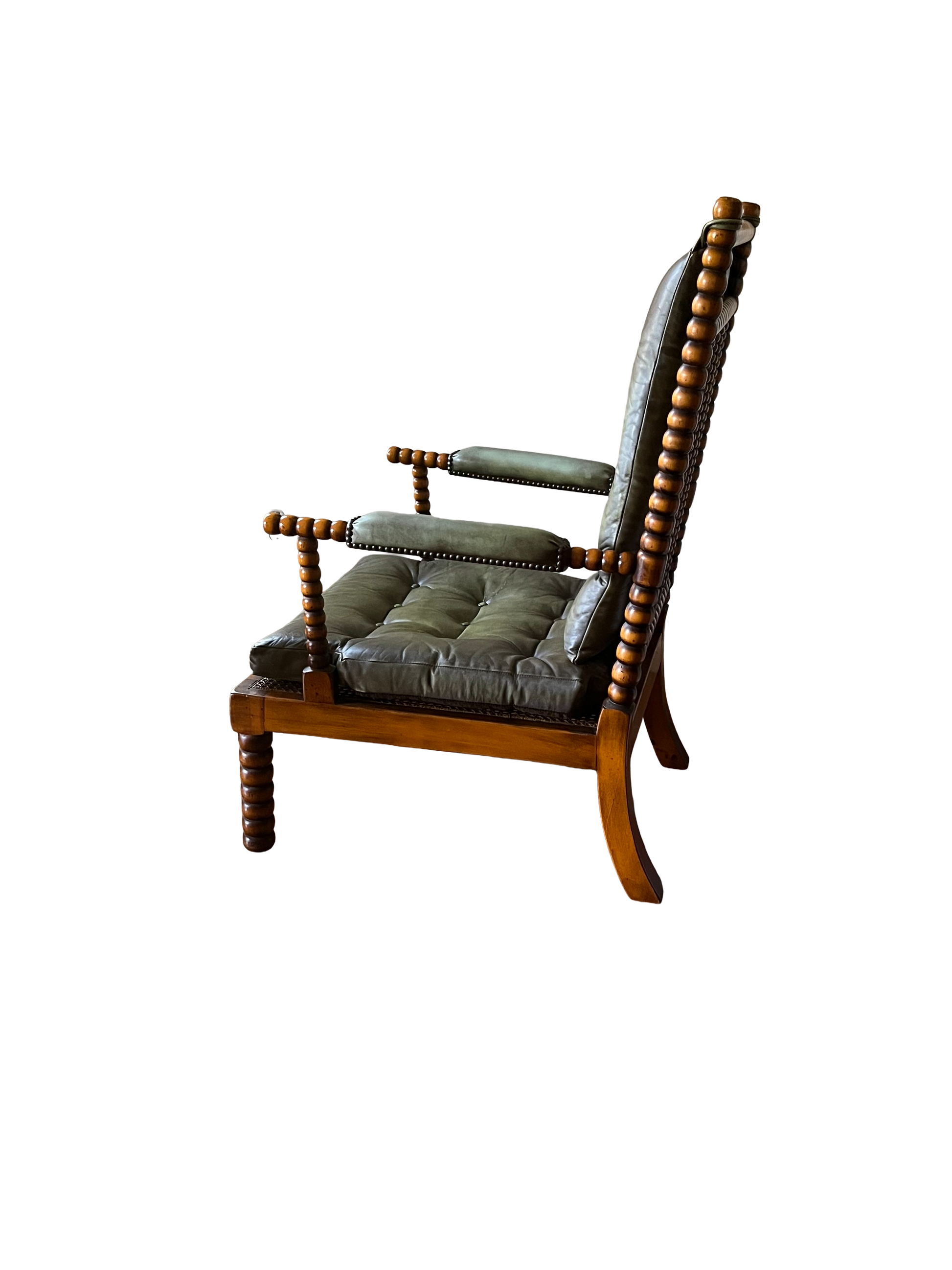 Vintage Valenti Leather & Wood Bobbin Armchair 1960’s Spanish MCM