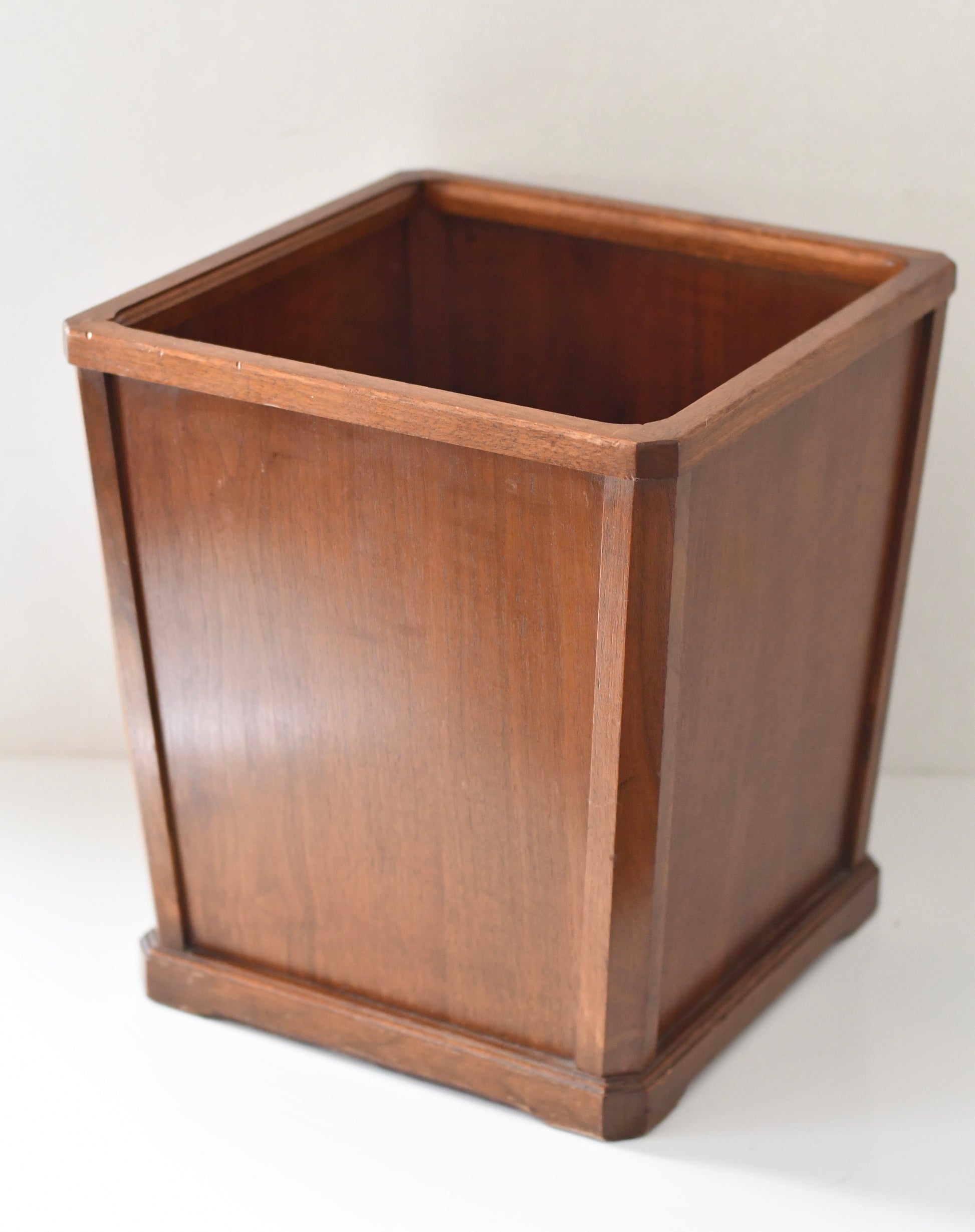 Vtg Mid Century NUCRAFT Walnut Wood Office Waste Basket Trash Can Michigan